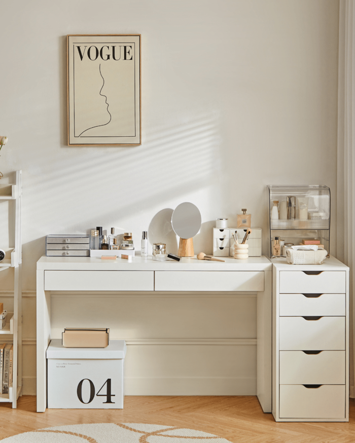 This is a beautiful desk that fits perfectly in a small room. The bookshelf is divided into multiple sections, making it convenient to organize, and the drawers are great for storing small items. Most importantly, the desk height can be adjusted to two levels, making it suitable for both children and adults.