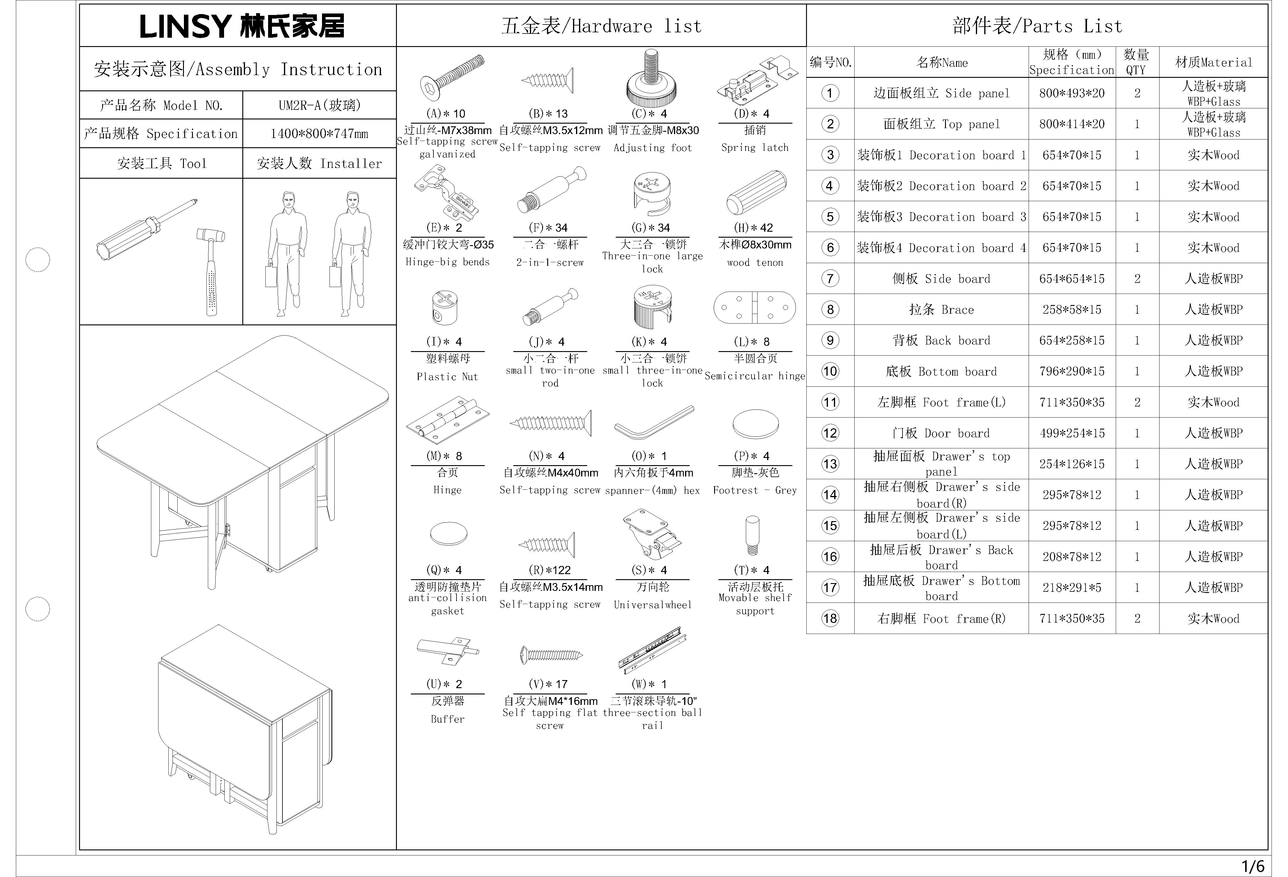 • Foldable double drop-leaf design.