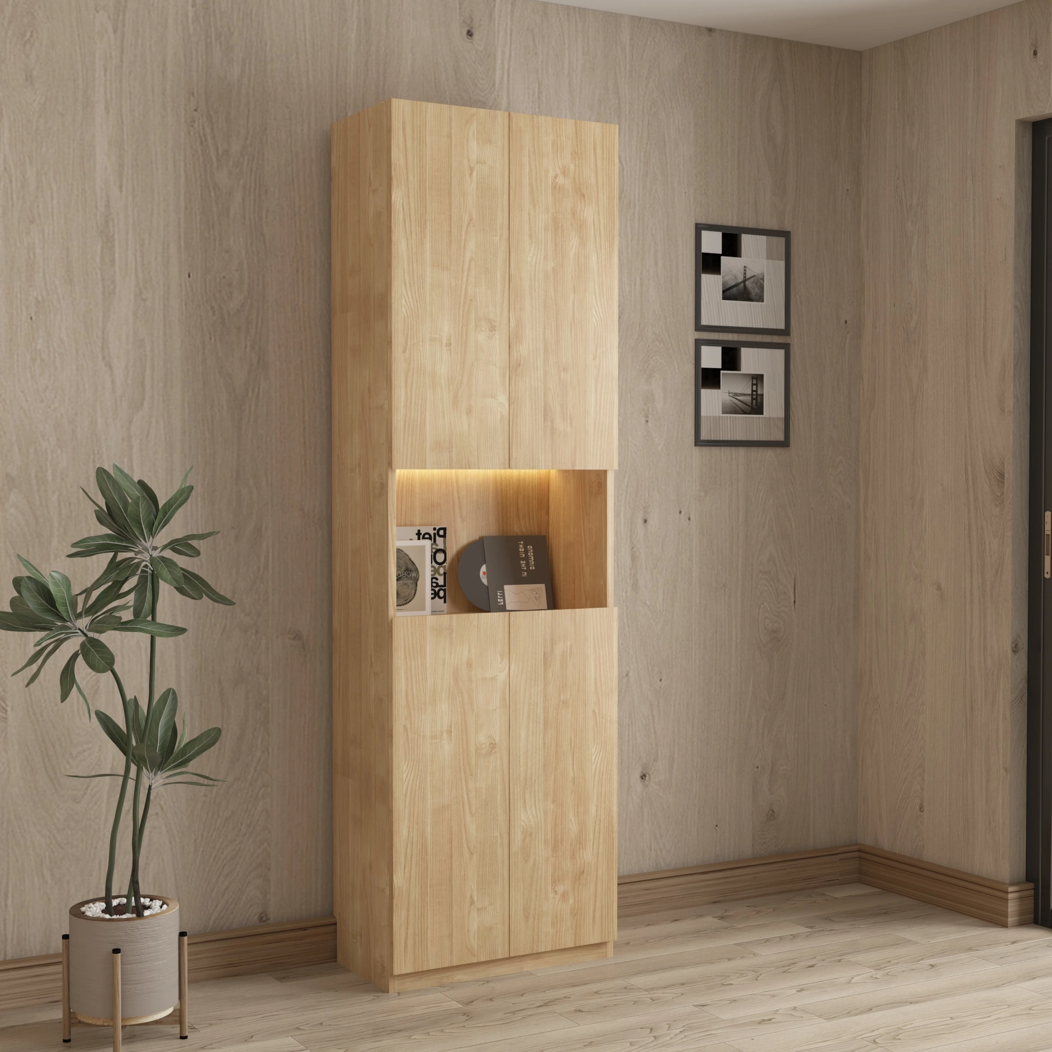Loft Kiri Bookcase with 4 Doors, 60cm, Natural Wood